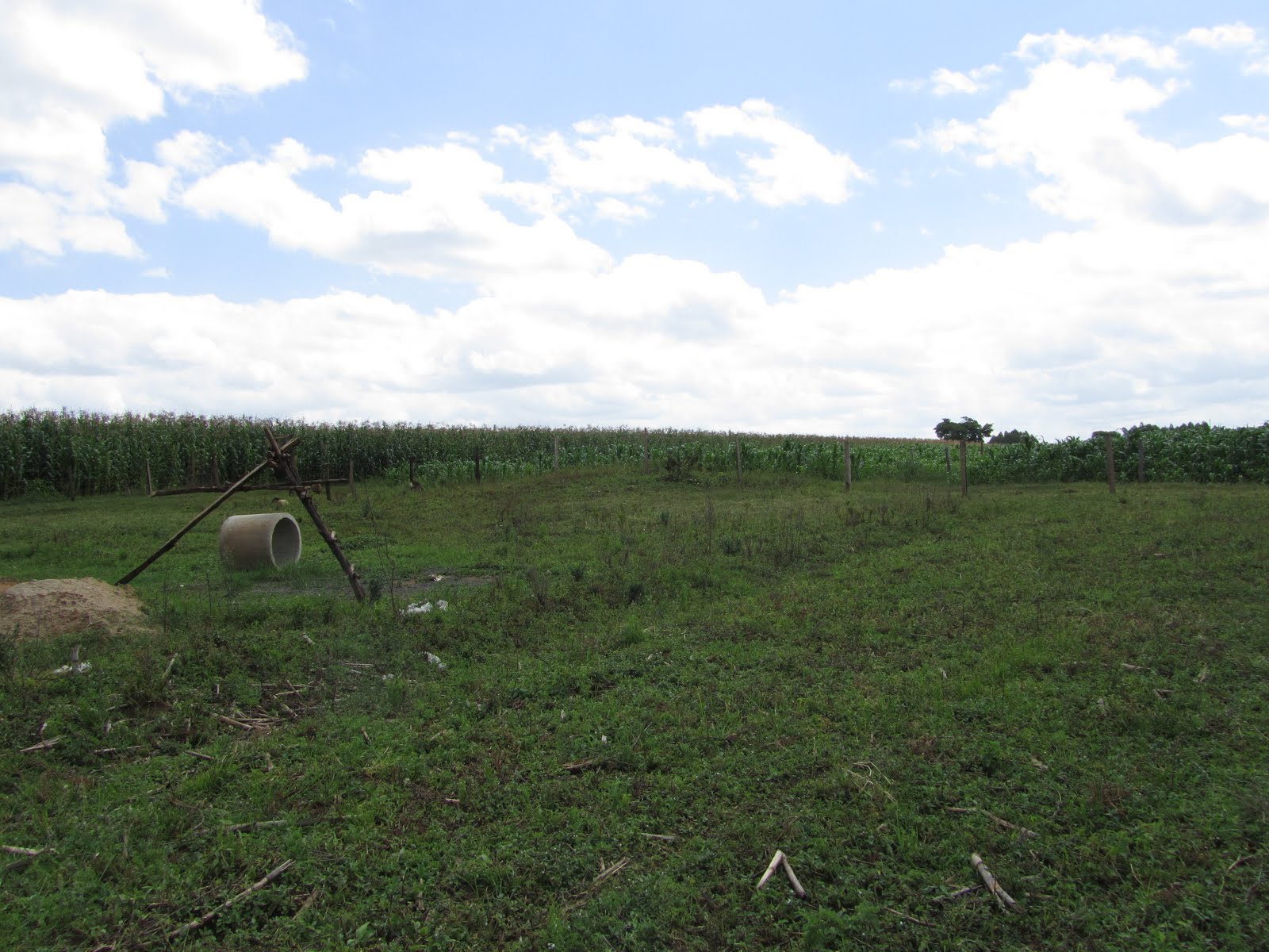 The tie beam has been formed using lumber and poured with concrete all the way around the outside of building one. Getting the concrete up was done one pan at a time.